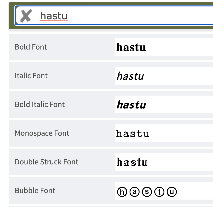 A cool font generator that provides all kinds of free fancy fonts for your input text. Just click on a desired font and paste anywhere